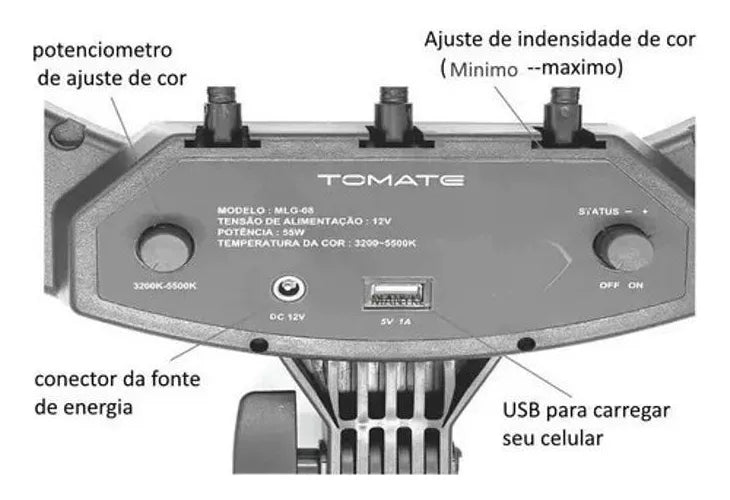 O Iluminador Ring Light Led Profissional 18 Polegadas da Tomate é ideal para quem busca uma iluminação profissional. Com potenciômetro para ajuste linear da temperatura de cor, você pode variar de 3200k a 5500k, obtendo a luz desejada sem a necessidade de filtros. Além disso, possui potenciômetro para ajuste da intensidade do brilho da luz, com ajuste de 0 a 100%.